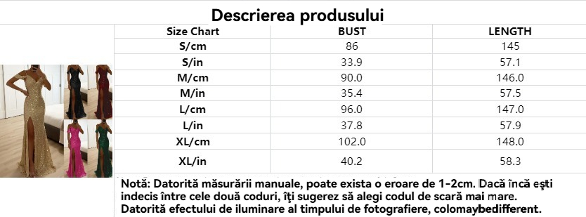 Rochie cu paiete și crăpături înalte, cu umerii goi