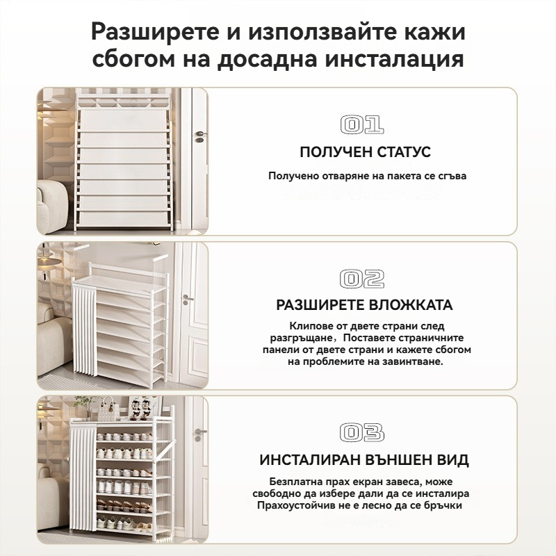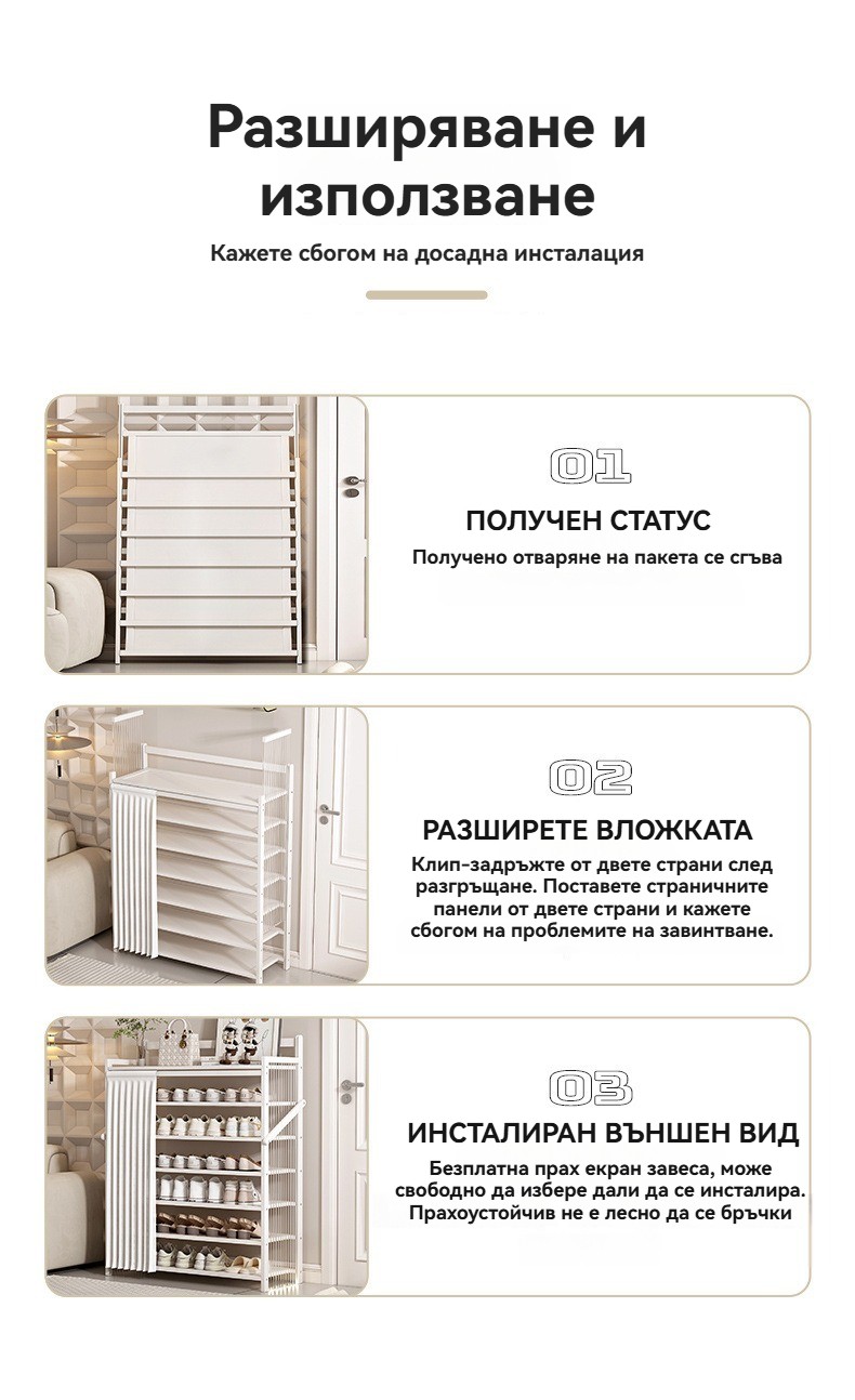 Позволява съхранение на няколко чифта обувки едновременно.