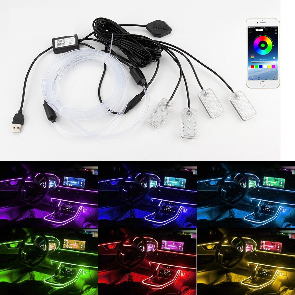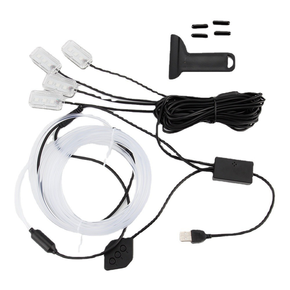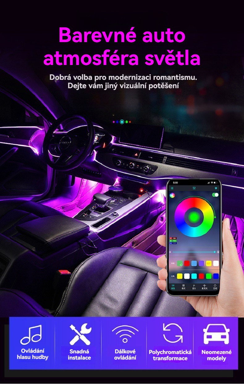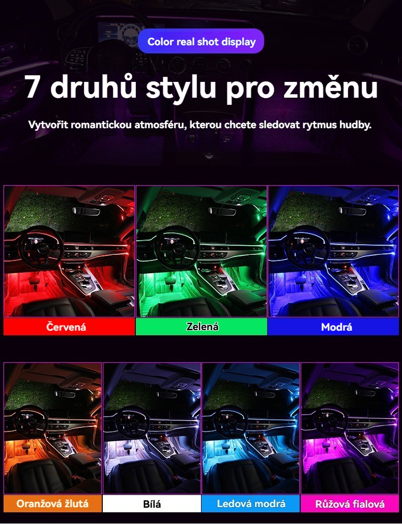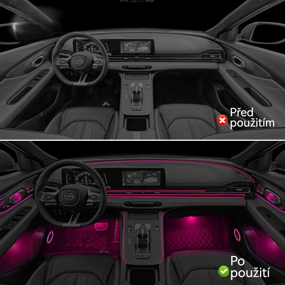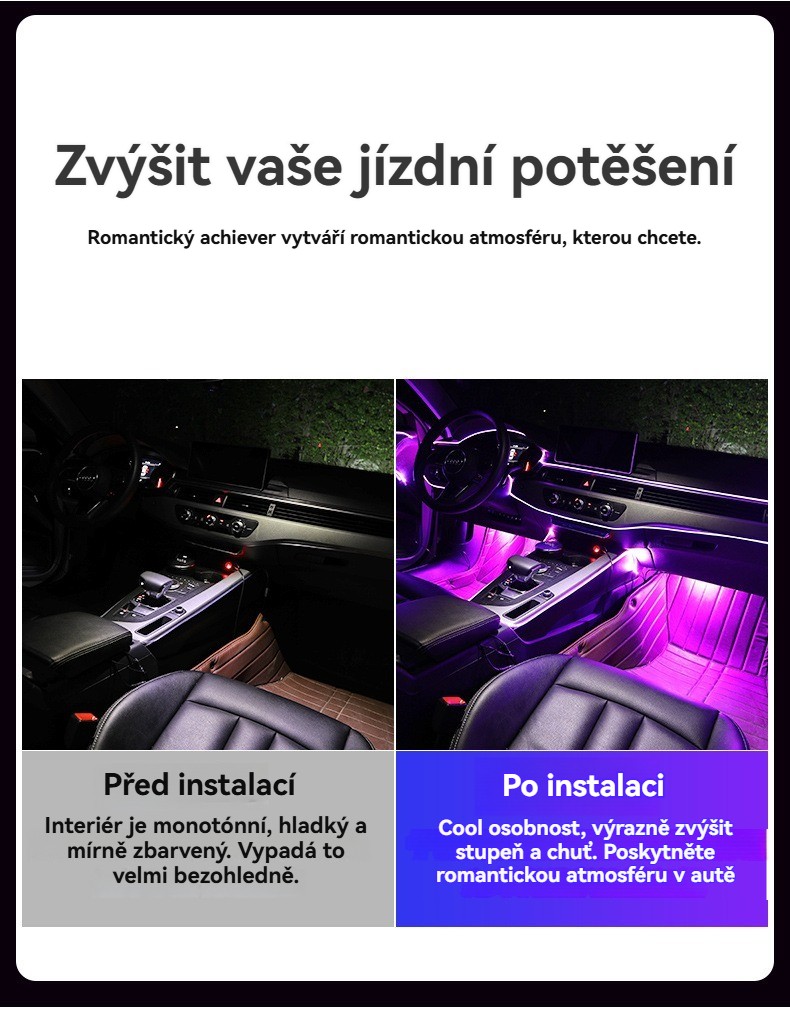 USB hlasem ovládané ambientní osvětlení auta · Barevné studené světlo · Instalace bez lepidla