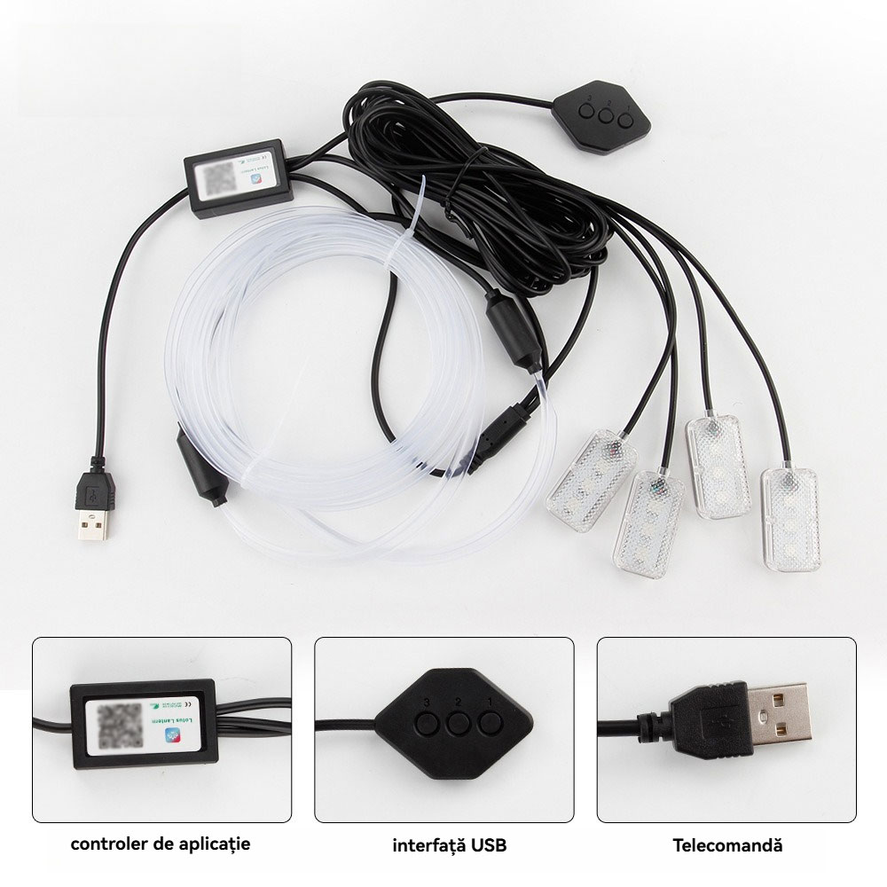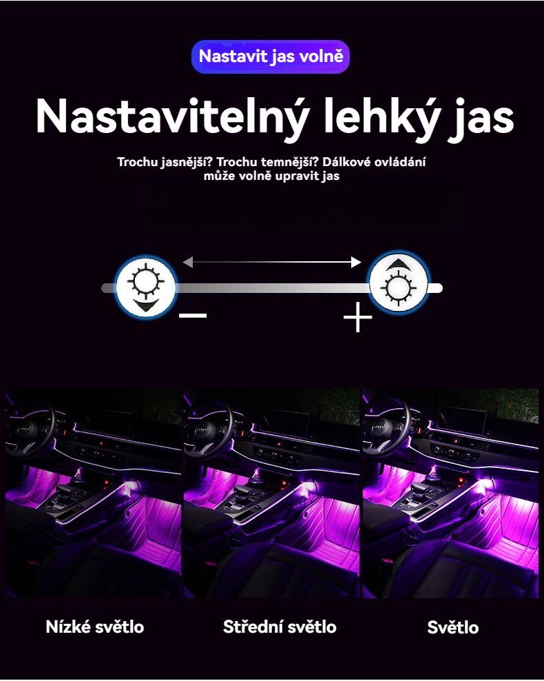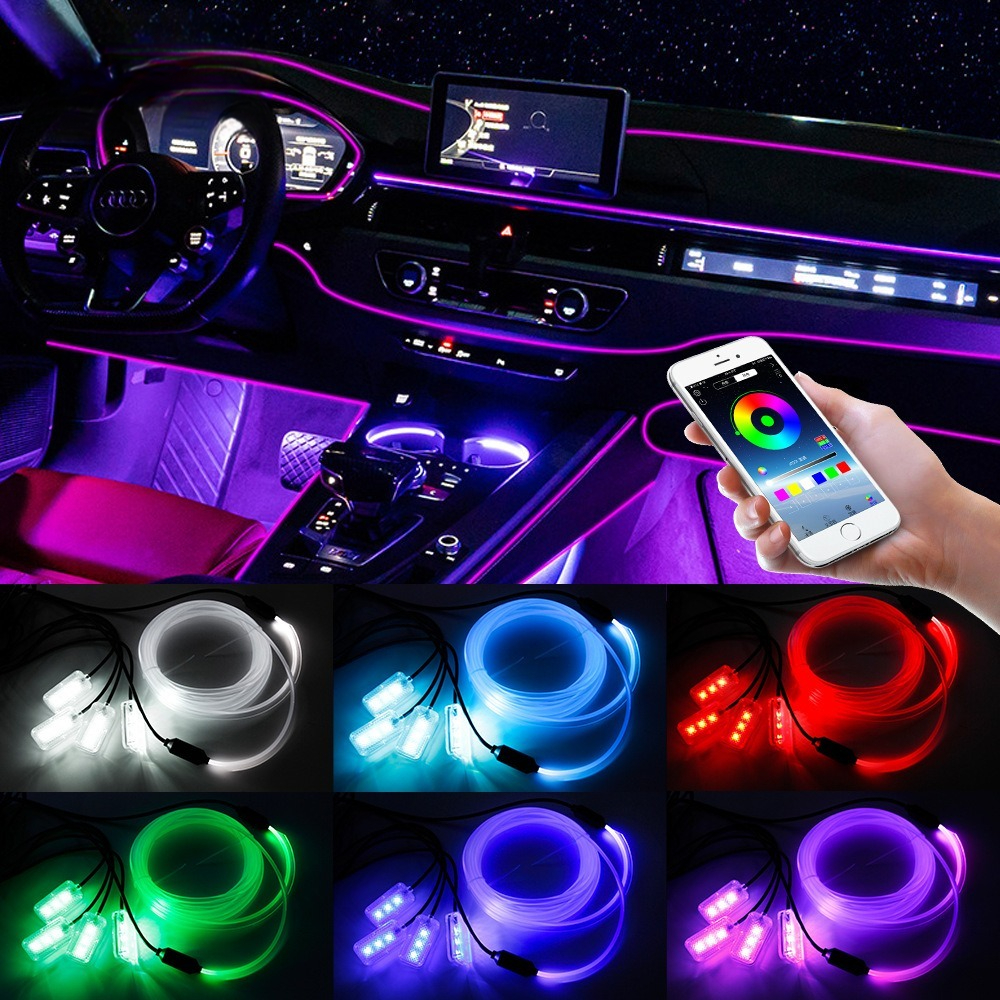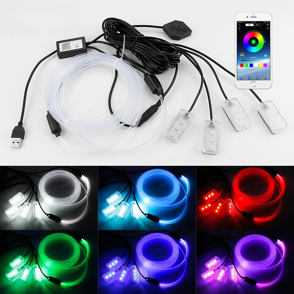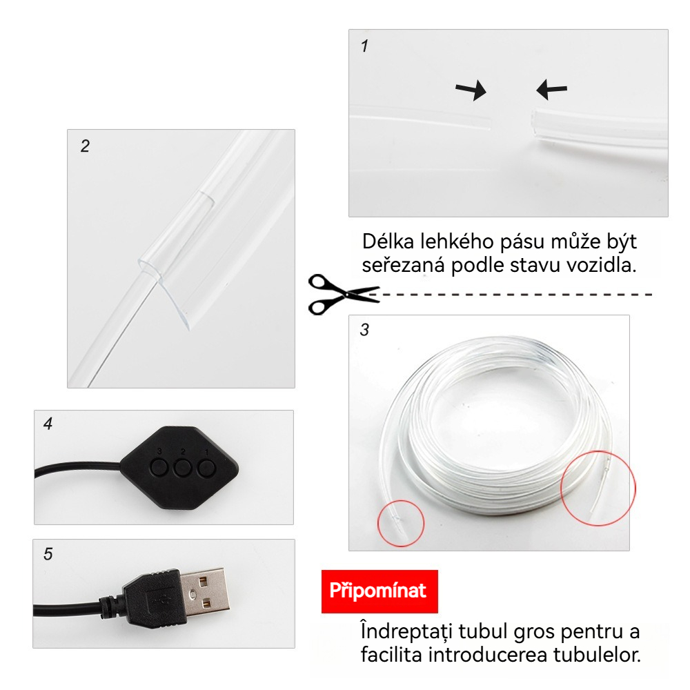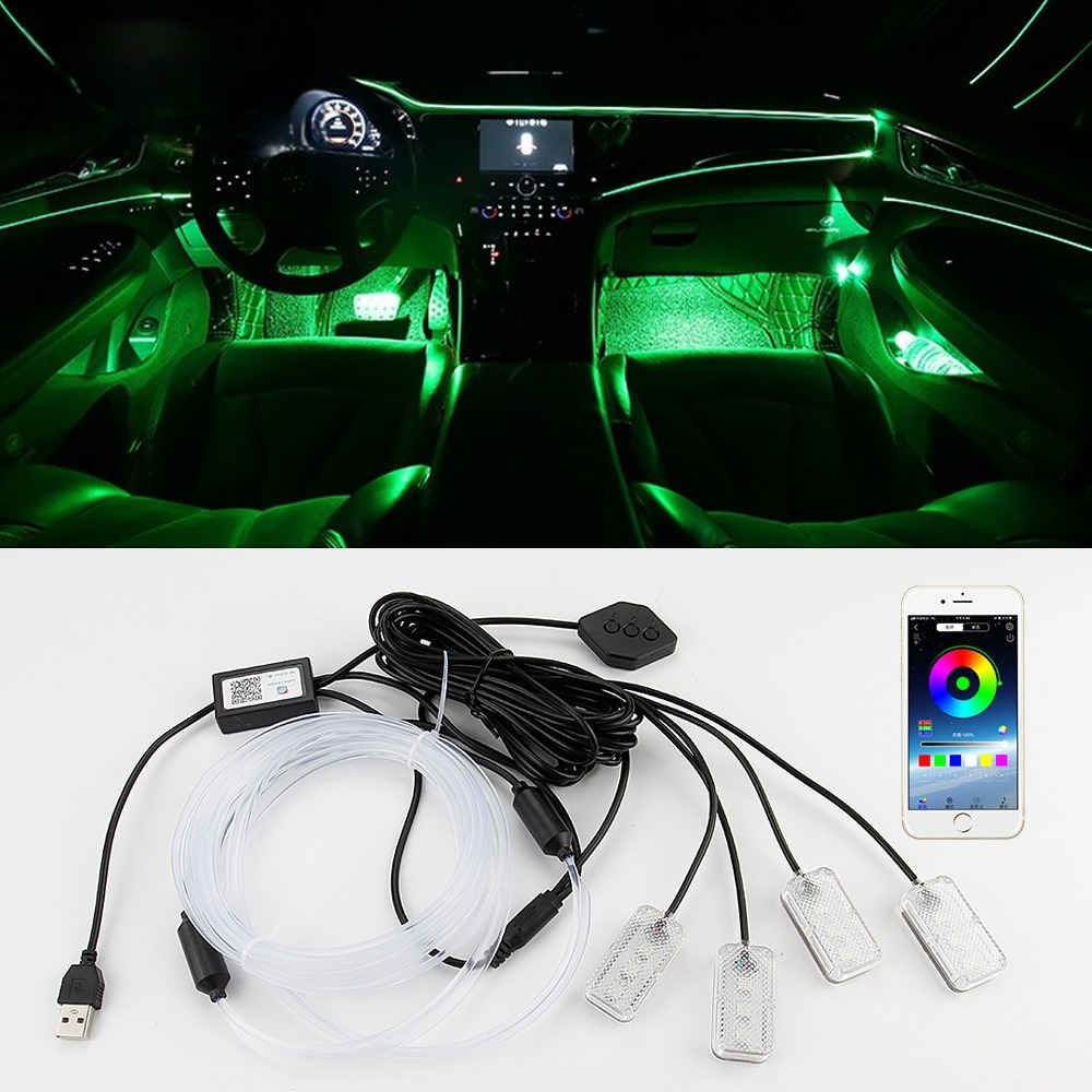 USB hlasem ovládané ambientní osvětlení auta · Barevné studené světlo · Instalace bez lepidla